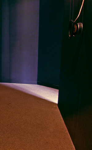 This installation consists of pairs of speaker drivers installed opposite of each other. Each pair bridges a dimension within the space and quietly emits an electronic sine tone that closely corresponds to a prominent acoustical resonance caused by the distance the pair traverses. Matching the physical sizes of the space the static tones are naturally amplified by the architecture and so appear without clear directionality or shape. A constantly changing interval of two tones can be heard in the space.